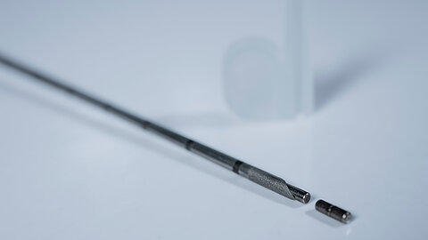 Together with our customer we developed a stainless steel canula with custom spacer and integrated titanium stylet. sfm was able to help facilitate the process from research and development to manufacturing to final product validation. Precise markings on the cannula, a very sharp bevel, and optimized tactile feel of the plastic molding provide the best possible application support.